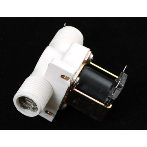 Control the flow of fluid using the flow of electrons! This liquid valve would make a great addition to your robotic gardening project. There are two 1/2" (Nominal non-taped National Pipe) outlets. Normally, the valve is closed. When 12VDC is applied to the two terminals, the valve opens and water can push through. The valve has a gasket arrangement inside, so there is a minimum pressure requirement of 0.02 Mpa (3 PSI). Also, liquid can only flow one direction.