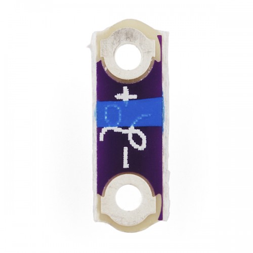 Description: Need a smaller way to add some 'twinkle' to your LilyPad project? Then you need some LilyPad Micros! A LilyPad Micro is like a smaller version of the LilyPad LED board. By eliminating the resistor and changing the orientation of the surface mount LED, Sparkfun has shrunk the board down which looks great in elegant designs or on sheer fabrics where you don't need the extra weight or exposed board space. It's really the closest you can come to sewing a point of light directly to your project. Note: Because the board don't include a current-limiting resistor, it is possible to over-power them and possibly burn them up. The high resistance of conductive thread can help protect the Micros from high current, so long stitches can be used with most power sources to keep the power levels 'Micro-friendly'. If you aren't sure where to start with resistance and current, using these in conjunction with a LilyPad Simple or Main Board is a great place to start, because they both have built-in current limiting and can't burn up your Micros. Note: These are sold in strips of five boards which can be snapped apart with pliers. Some, however, may come as loose pieces that are already snapped apart. Schematic: http://dlnmh9ip6v2uc.cloudfront.net/datasheets/E-Textiles/Lilypad/Lilypad-Sequin-v11.pdf Datasheet: www.sparkfun.com/datasheets/DevTools/LilyPad/S150ANB4-H.pdf
