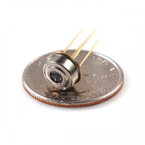 Melexis' MLX90614ESF-BAA is an infrared thermometer designed for non-contact temperature sensing. An internal 17-bit ADC and a powerful DSP contribute to the MLX90614's high accuracy and resolution. It has a huge number of applications including body temperature measurment and movement detection. The MLX90614 provides two methods of output: PWM and SMBus (i.e. TWI, I2C). The 10-bit PWM output provides a resolution of 0.14°C, while the TWI interface has a resolution of 0.02°C. The MLX90614 is factory calibrated in wide temperature ranges: -40 to 85°C for the ambient temperature and -70 to 382.2°C for the object temperature. The measured value is the average temperature of all objects in the Field Of View of the sensor. The MLX90614 offers a standard accuracy of 0.5°C around room temperatures. This devices comes in an industry standard TO-39 package. This is the 3V version of this sensor. Features: Small size, low cost Easy to integrate Factory calibrated in wide temperature range: -40 to +85°C for sensor temperature -70 to +380°C for object temperature SMBus compatible digital interface Customizable PWM output for continuous reading High accuracy of 0.5°C over wide temperature range (0 to +50°C for both Ta and To) Measurement resolution of 0.02°C Single and dual zone versions Simple adaptation for 8 to 16V applications Power saving mode Different package options for applications and measurements versatility Automotive grade Datasheet: https://www.sparkfun.com/datasheets/Sensors/Temperature/SEN-09570-datasheet-3901090614M005.pdf