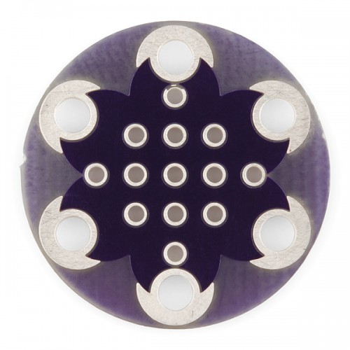 Description: This is a small board for prototyping through hole components with the LilyPad system. There are an array of pins all shorted together with 10mil traces. This allows for quick and easy prototyping - all you have to do is cut the traces between holes you don't want connected! Standard 0.1" array. Check rear photo for trace configuration. LilyPad is a wearable e-textile technology developed by Leah Buechley and cooperatively designed by Leah and SparkFun. Each LilyPad was creatively designed to have large connecting pads to allow them to be sewn into clothing. Various input, output, power, and sensor boards are available. They're even washable! Dimensions: 20mm outer diameter Thin 0.8mm PCB