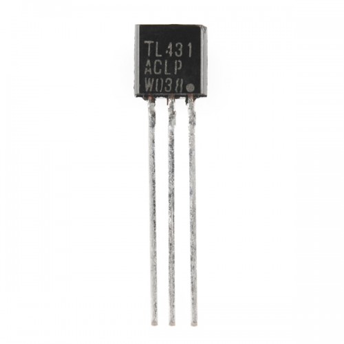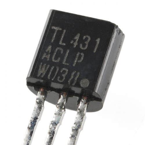 The TL431 is a three-terminal programmable shunt regulator diode. This monolithic IC voltage reference operates as a low temperature coefficient zener which is programmable from Vref to 36 V with two external resistors. They exhibit a wide operating current range of 1.0 mA to 100 mA with a typical dynamic impedance of 0.22 Ohms. The characteristics of these references make them excellent replacements for zener diodes in many applications such as digital voltmeters, power supplies, and op-amp circuitry. The 2.5 V reference makes it convenient to obtain a stable reference from 5.0 V logic supplies, and since the TL431 operates as a shunt regulator, it can be used as either a positive or negative voltage reference. Features: Programmable Output Voltage to 36 V Voltage Reference Tolerance: ±0.4%, Typ @ 25°C (TL431B) Low Dynamic Output Impedance, 0.22 Ohms Typical Sink Current Capability of 1.0 mA to 100 mA Equivalent Full-Range Temperature Coefficient of 50 ppm/°C Typical Temperature Compensated for Operation over Full Rated Operating Temperature Range Low Output Noise Voltage Pb and Halide-Free Datasheet: http://dlnmh9ip6v2uc.cloudfront.net/datasheets/Components/General%20IC/TL431-D.pdf